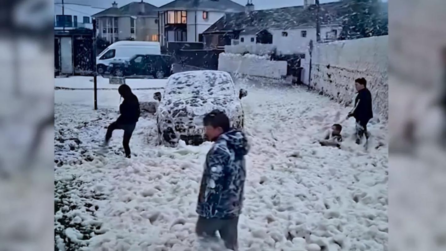 An der irischen Küste bedecken riesige Mengen Meeresschaum Häuser und Straßen. Kinder sind begeistert, doch Experten warnen: Hinter dem faszinierenden Phänomen steckt auch eine Gefahr. ...mehr